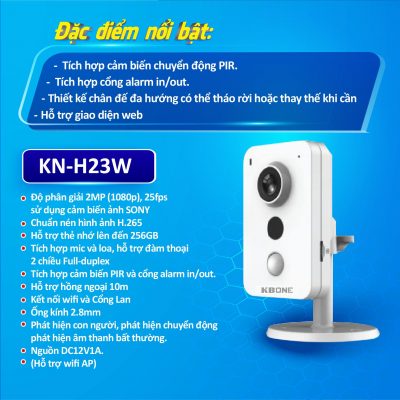 Thông số kỹ thuật camera IP Wifi 2.0MP KBONE KN-H23W