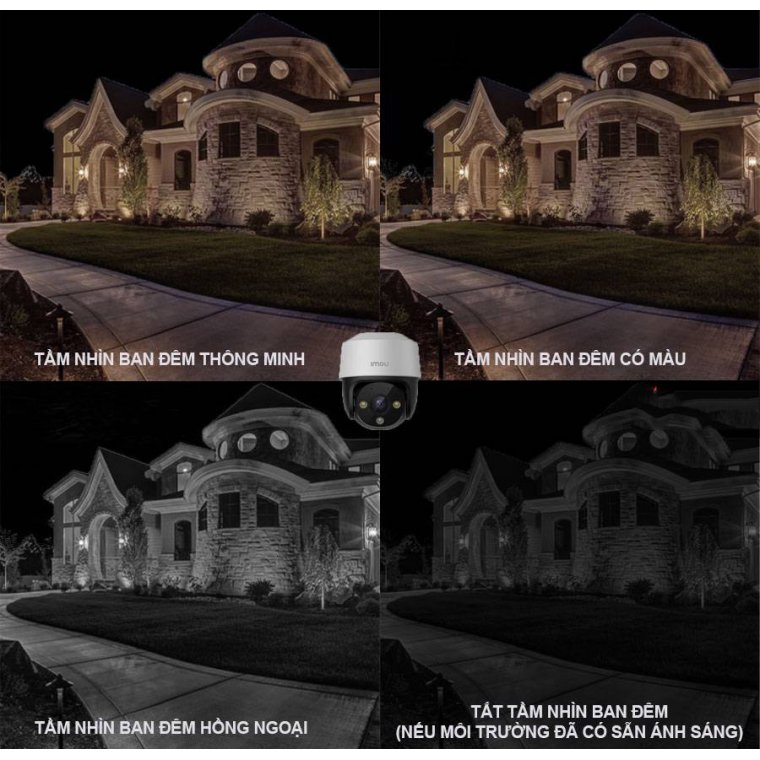 – Chế độ ban đêm thông minh với 4 chế độ sáng: Tự động, Full Color, Hồng ngoại và tắt.