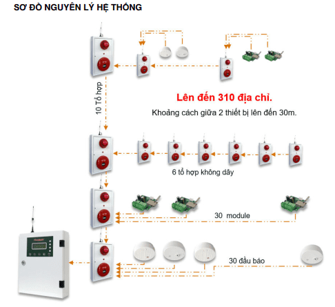 Khả năng tùy biến hệ thống linh hoạt với sự kết hợp các thiết bị tương thích như: chuông báo cháy, đèn báo cháy, nút nhấn không dây, module giám sát, đầu báo khói và nhiệt không dây, đầu báo gas, đầu báo beam...